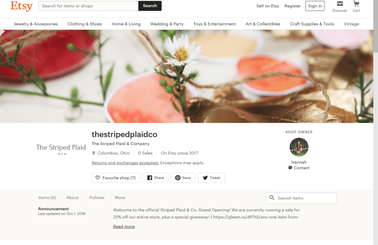 Congrats, Hannah! Etsy is so fun! 😀
