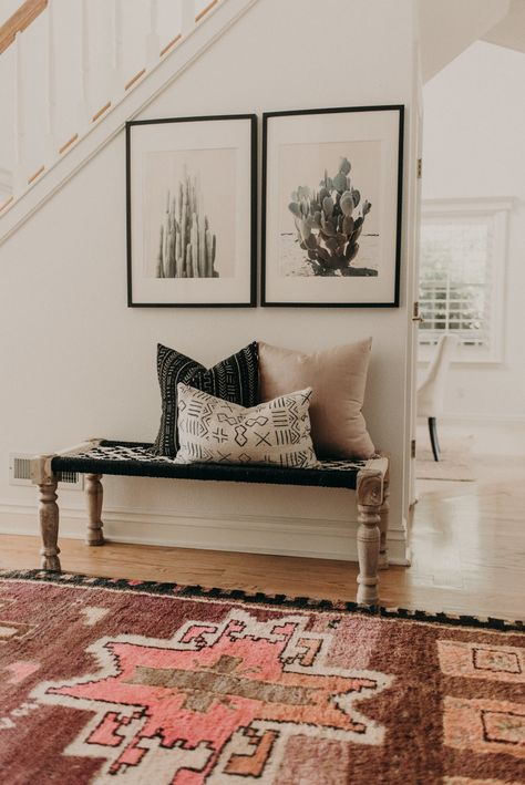 I feel like an entryway really sets the tone for the house. One thing I (already) love doing is entertaining, and making people feel at home & comfortable. I feel like the pillows and eclectic vibe of this entryway give off a very welcoming and inviting feel.