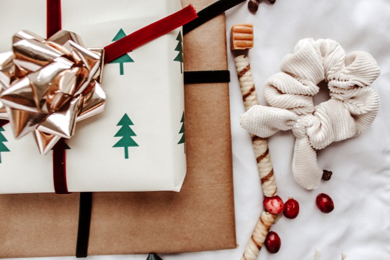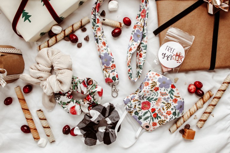 Alright so the winner will receive the buffalo plaid scrunchie, deck the halls scrunchie and the vanilla corduroy scrunchie pictured above. Also the matching Rifle Paper Co floral face mask and matching lanyard (also pictured above). And they’ll also receive one of the exclusive Black Friday & Cyber Week free gifts included with every order as well as a handwritten and personalized note from me! ✨