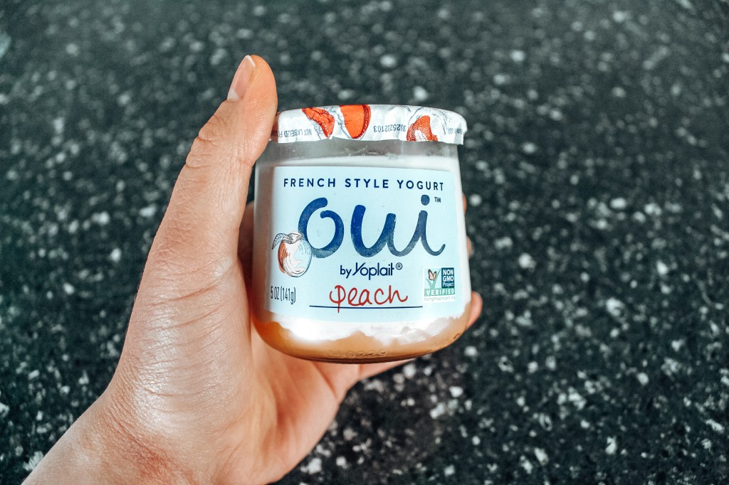 Oui Yogurts. These do have some cane sugar in them, so I don’t eat them everyday but they are a fun treat when I do! My favorites are the peach, lemon and strawberry – although all the flavors are so good! I usually get mine locally from Walmart or Kroger.