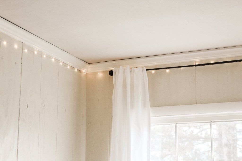 If you’ve read any other of my decorating posts, then you’ll probably know that I absolutely love getting creative with lighting. Obviously, highlight the natural light in your space as much as possible (think: soft curtains that let natural light in or mirrors to reflect the light) but if your space doesn’t have much natural light, don’t be afraid to get creative with your lighting options! For example, my sister and I hung fairy lights around the ceiling of our room and it’s one of our favorite things in our room – they’re so fun to turn on at night or when we have friends over for a cozy vibe!