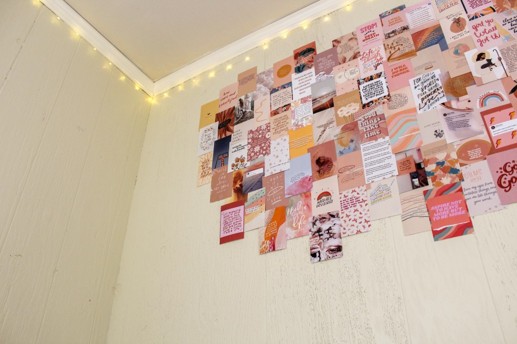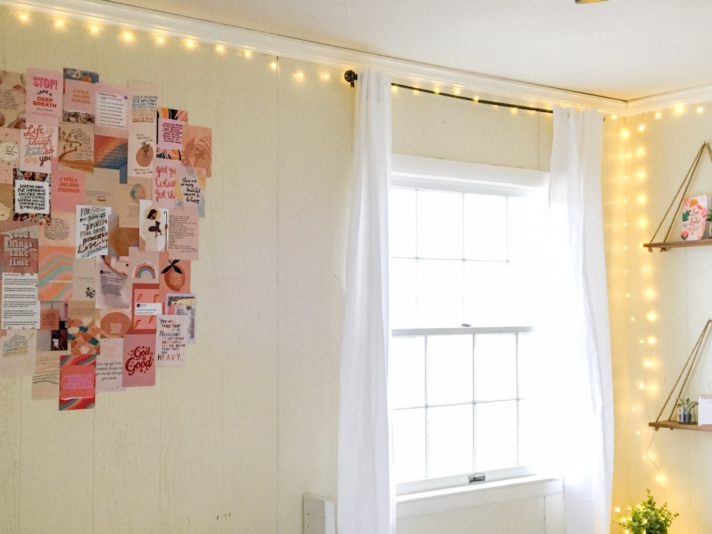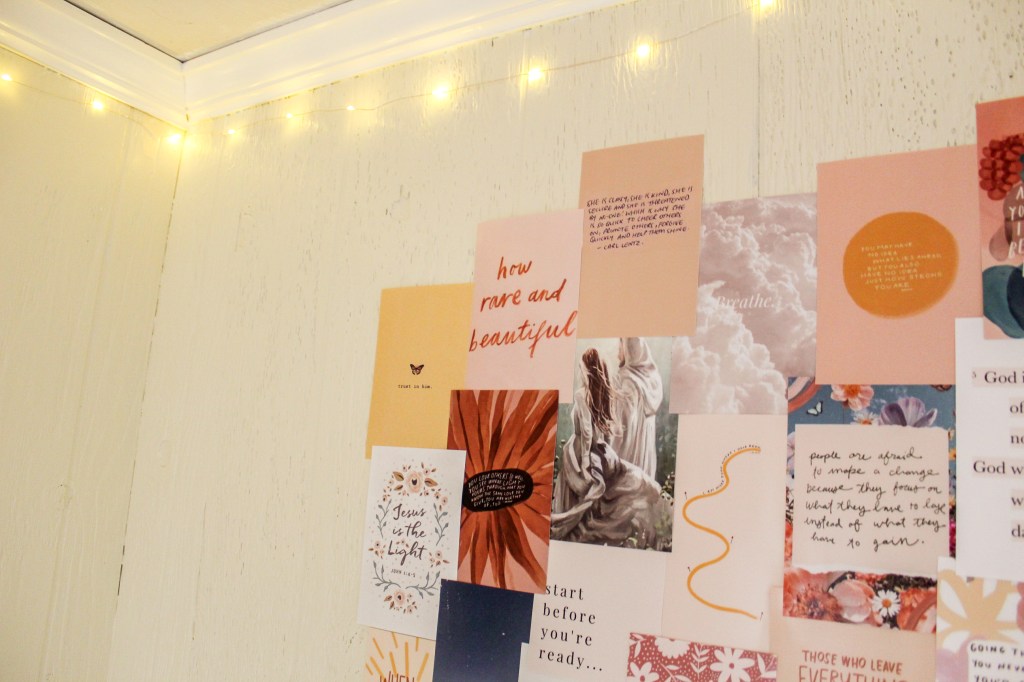 Also, thank you so much to Wallflower Collages for partnering with me* and sending me the collage! There are a ton of people who sell wall collage kits online, but one thing I really love about Taylor’s shop is that she sells adorable Christian collages, which I haven’t been able to find anywhere else! I love cute décor, but when it’s cute and also is inspiring and has meaning behind it I love it even more! It’s so fun because if you have any leftovers after making your collage you can save them to send to friends with notes of encouragement! ❤