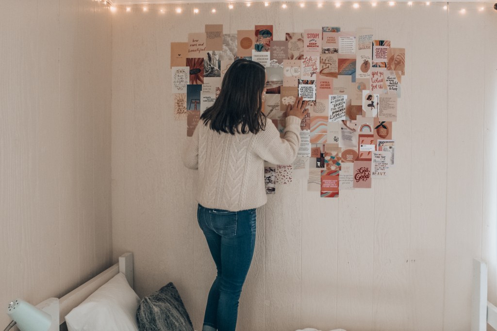 To start, you’ll need to find a blank wall where you can hang the collage. My sister and I had this pretty big blank wall in our room that needed something on it and this was a lovely solution!