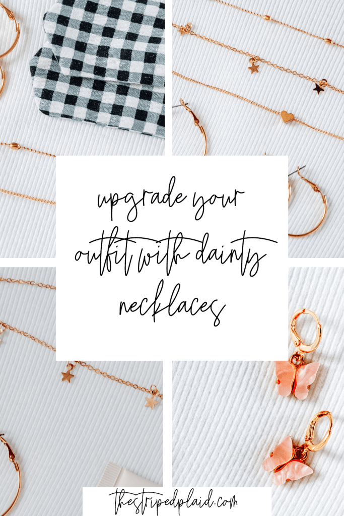 Hey friends! I don’t know about you, but one of my favorite things is to add a dainty necklace (or two) to an outfit. It just dresses the outfit up a little bit and makes it look like you tried, which let’s be honest, who doesn’t want!? And the nicest thing about dainty necklaces is that you can wear them with anything! Wear them to make your sweats outfit look more put-together or wear them with a cute dress! If you didn’t know, I love jewelry that goes with everything, is versatile and simple – so that’s basically what this post is all about!