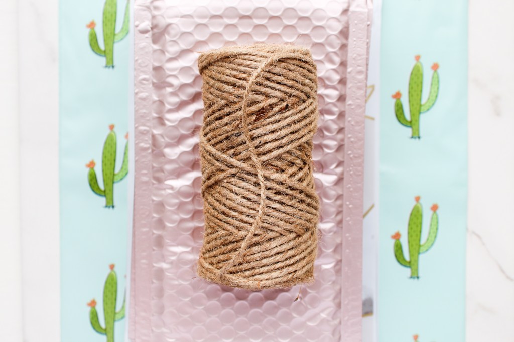 All of my actual packages go out in either a padded rose gold mailer, a geometric marble poly mailer or a cactus poly mailer. Once I run out of the geometric marble and cactus designs, I’m gonna reorder them in a blush pink color to match the rest of my branding better! They also have these adorable “happy mail” stickers on the outside, which I think are just the cutest!