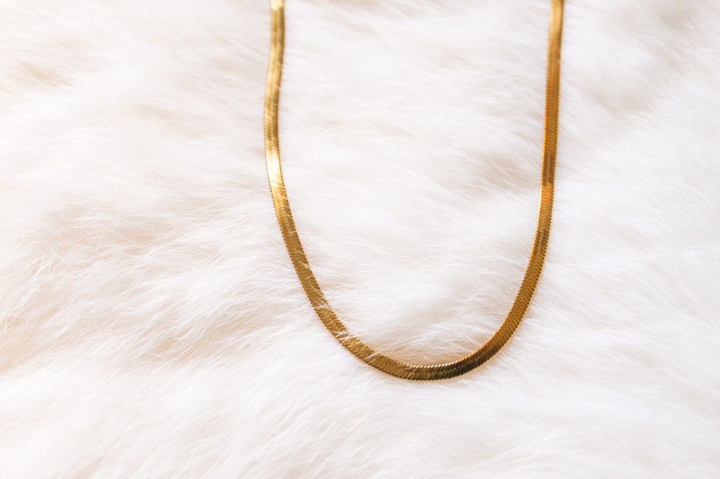 This herringbone chain necklace is the perfect minimal jewelry piece for layering or wearing alone! It can really go with any other gold necklace and is perfect for everyday or special occasions!